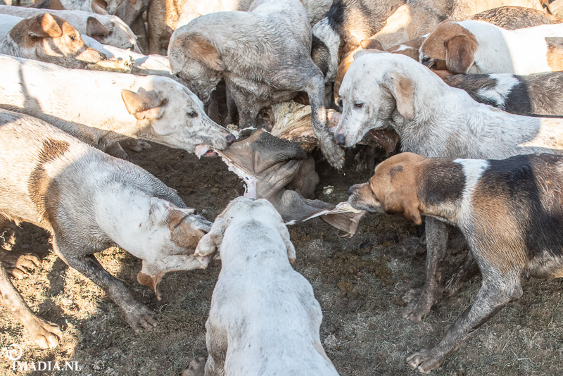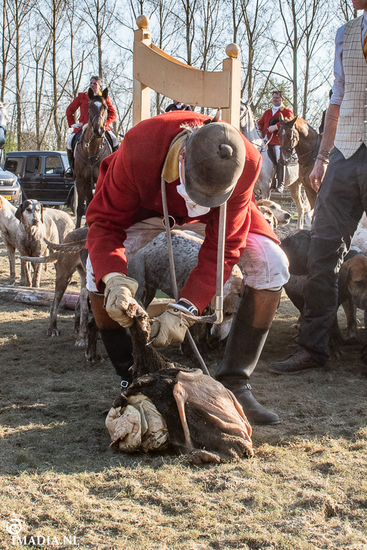 Bij een slipjacht wordt er een lap, die gedrenkt is in vossenurine, over een bepaalde route gesleept. De slippentrekker, ook te paard, doet zijn best om het spoor niet te makkelijk te maken door af en toe een rondje te rijden of de slip even van de grond te houden. De hondenmeute moet dit spoor volgen, aangevoerd door de Master and Huntsman. De Master wordt geassisteerd door de whippers-in. Zij helpen met het begeleiden en bij elkaar houden van de meute. Niemand mag de Master en de honden voorbij rijden. Hij rijdt altijd voorop, daarachter volgt de rest van de jachtpartij. Het is een vermoeiend gebeuren, dus wordt er regelmatig een pauze ingelast met wat gepaste versnaperingen. Na afloop van de jacht krijgen de honden een groot stuk pens als beloning. Nieuwe jachtleden worden na hun eerste slipjacht ‘gedoopt’ door de Master. Hij smeert een flink stuk van diezelfde pens over het gezicht van de nieuwe leden. Traditie! En dan worden de paarden en honden goed verzorgd, wordt het tweedjasje weer aangetrokken en wordt er natuurlijk geproost op de mooie dag en de goede afloop. Cheers old chap!